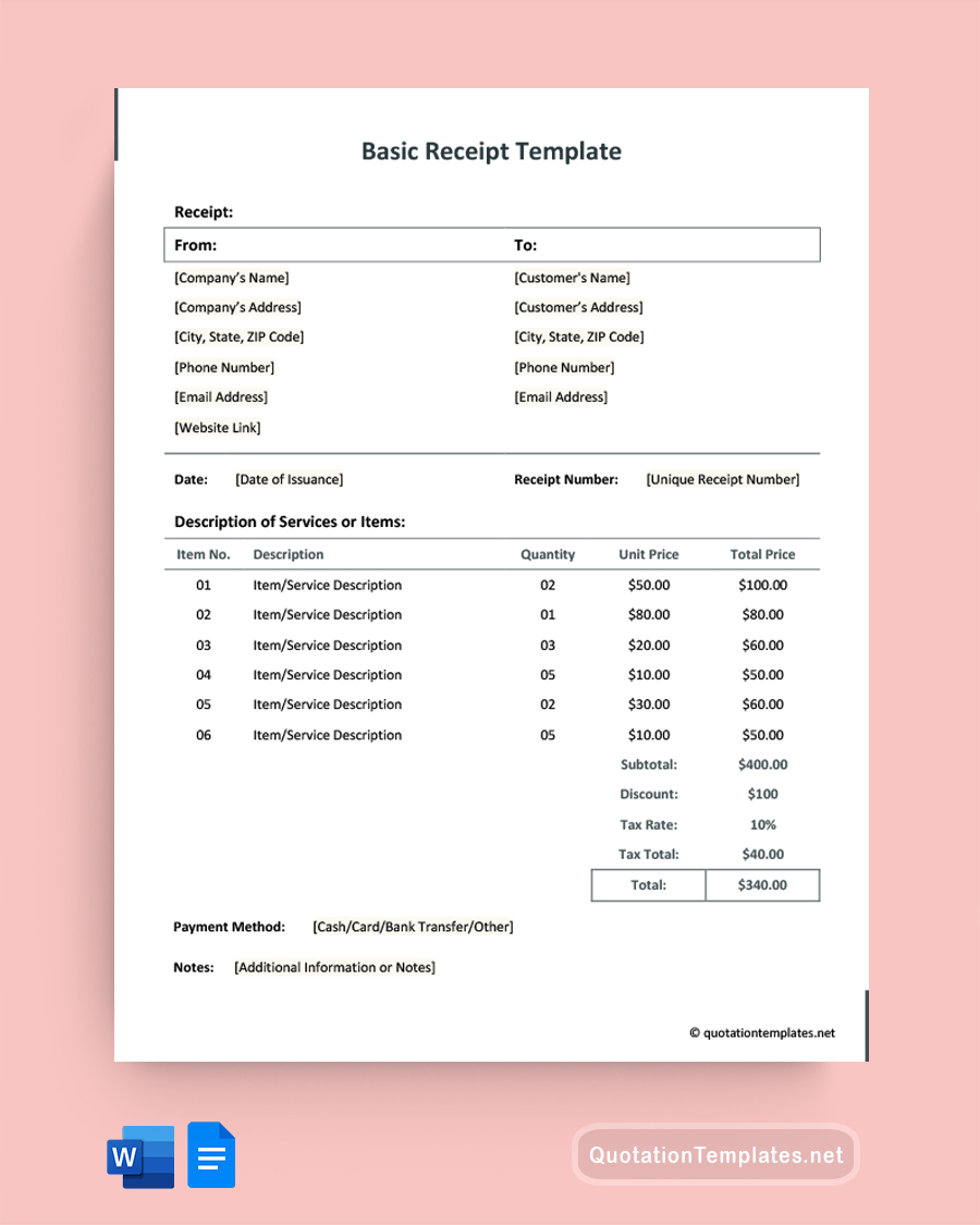 Our author's templates are unique and suitable for any format (docs, word, pdf) or. Our free receipt templates for google docs are fully customizable, easy to use, and can be shared, saved and printed. Choose the template you like best, and add your business. Make free customizable google docs receipt template and impress your clients, also.
